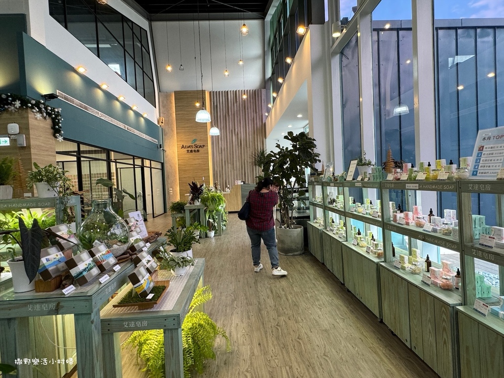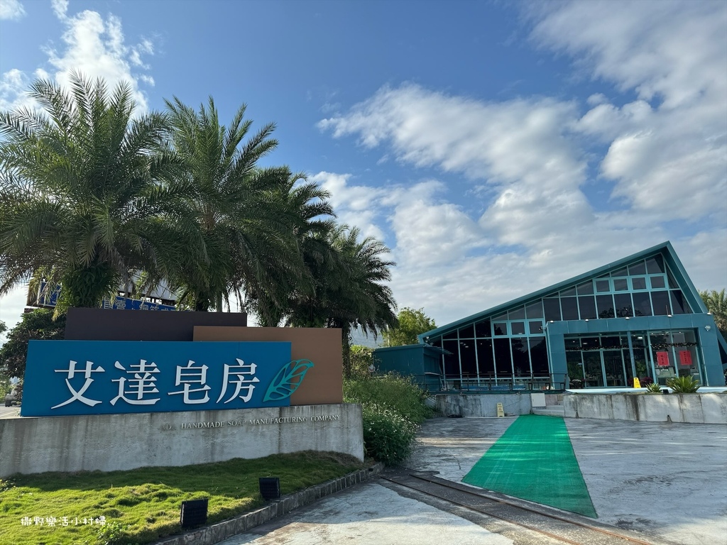 初次來到艾達皂房,遠遠就看見美麗的藍色玻璃屋,感覺好像特色咖啡廳一般,建築物外面的廣場也相當寬敞,我們將車子停在外面白線悠閒的走進來,外頭有一點點的悶熱也無妨,因為到了室內非常涼爽,這裡參觀不用門票,若是遇到下雨也不怕,這裡剛好也可以當作雨天備案景點唷