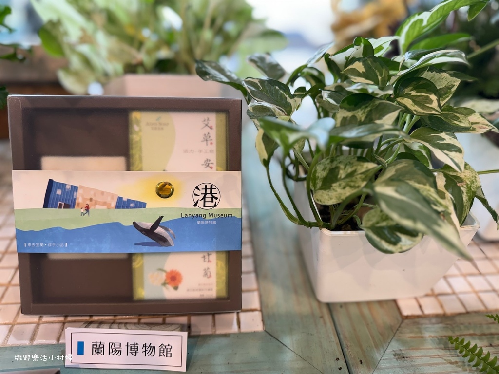 接著走到大廳中央的展示台,這邊屬於禮盒及伴手禮區,禮盒內容已經幫客人選好款式的組合,另外艾達皂房曾經在112年獲選為「宜蘭敬好生活品牌」,以宜蘭八種人文風景作為產品包裝,推出「蘭陽八景_手工皂禮盒」,將宜蘭特色展現於獨特的生活態度風格,讓生活的小美好寄託在手工皂上,洗滌身心也療癒身心