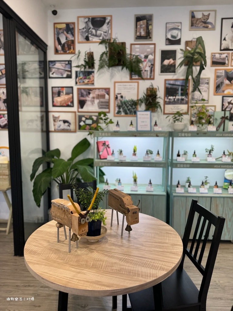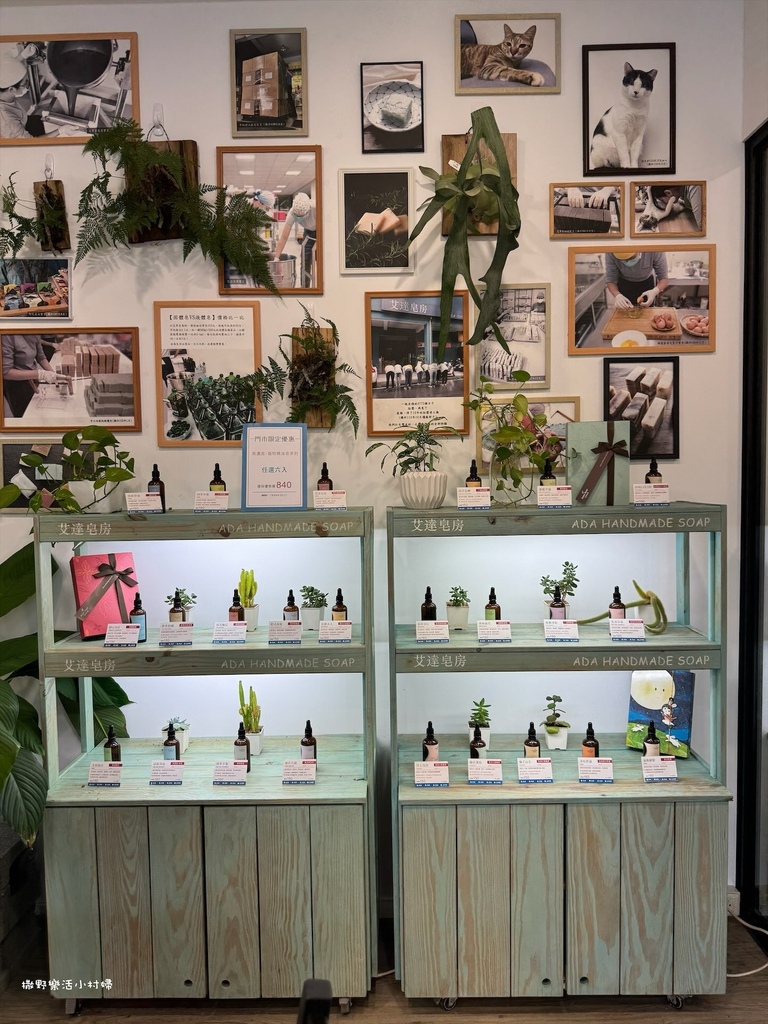 不僅如此,艾達皂房光線明亮,展示架上擺滿了精美的手工皂與禮盒,還有滿滿的綠色植物,看得出來布置得精巧用心,整個環境美美的又充滿香氛氣息,我們優雅地在這麼舒服的空間裡走著逛著,門市人員面帶笑容親切招呼,在這裡可以自行參觀選購,有問題隨時詢問都有人會上前來介紹解說,完全不會有推銷的感覺,是讓我們覺得很自在的主因