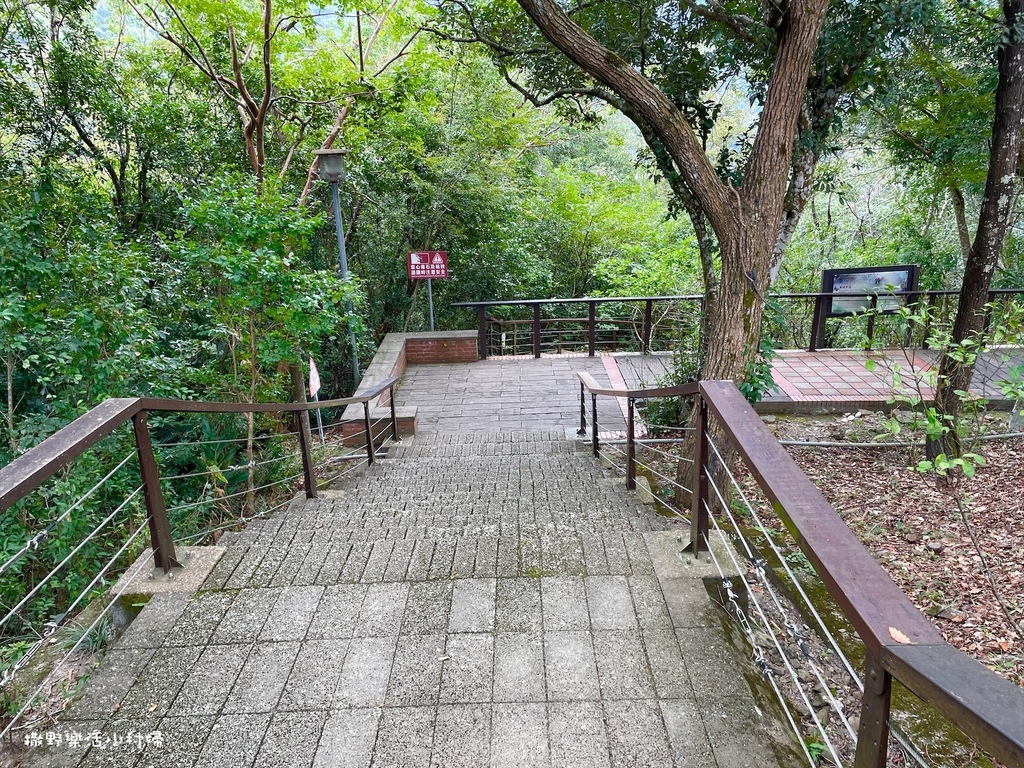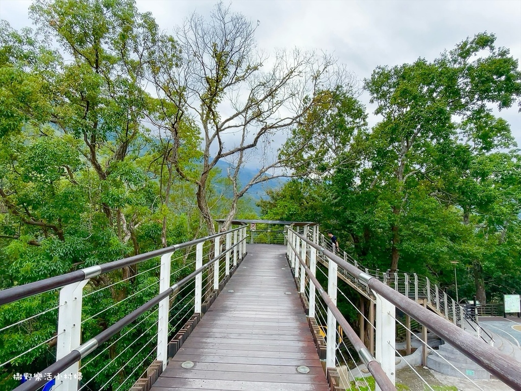 從遊客中心走天橋下去就是入口處,站在短短的橋上還能俯瞰山林風光,一片綠油油空氣也很清新