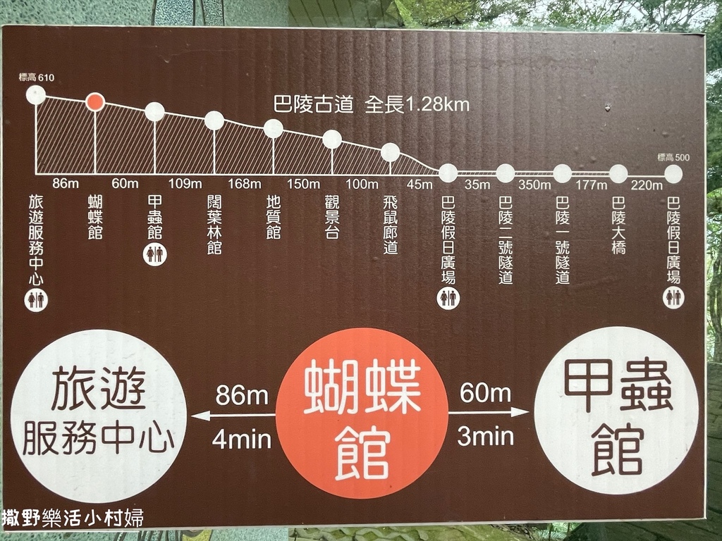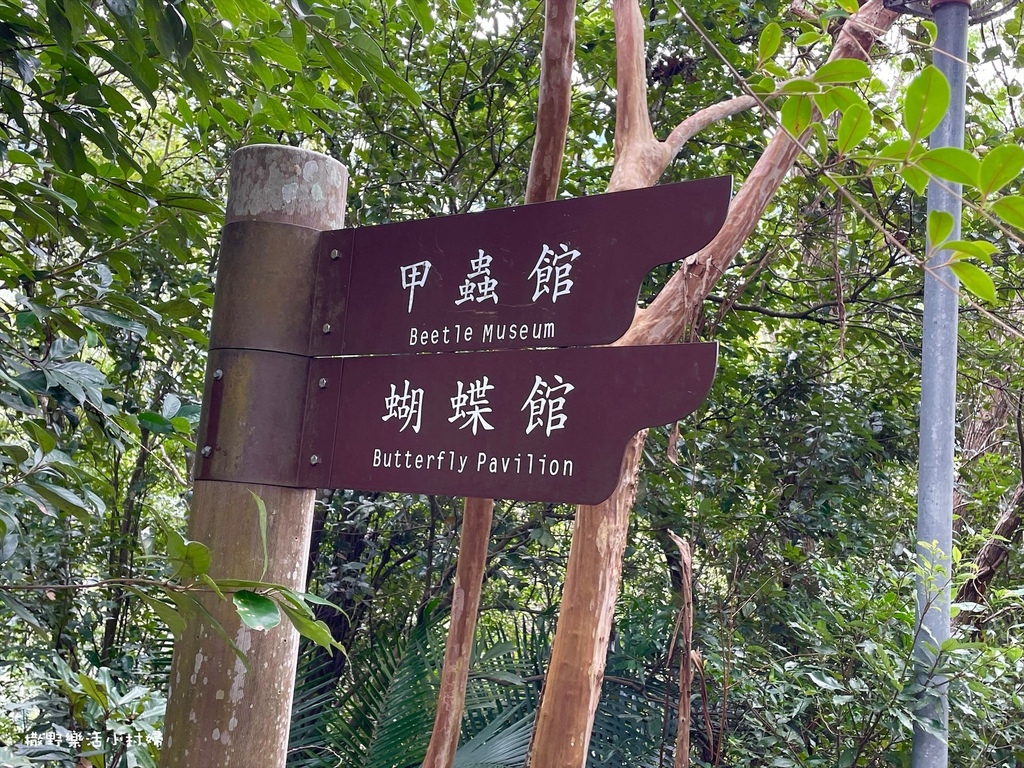 才開心走3分鐘還不到一百公尺,馬上便會看見蝴蝶館、甲蟲館的指標,心裡想這步道真是親民友善啊
