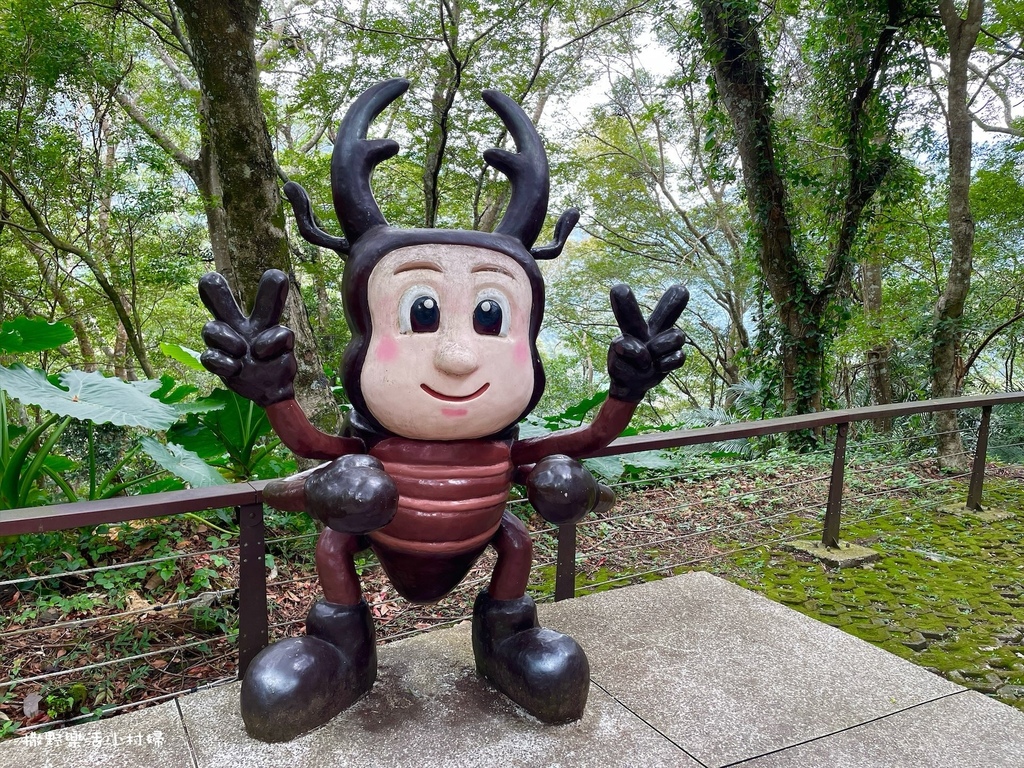 昆蟲館外面也有一個可愛鍬形蟲的大公仔,它還會比耶呢 😄小朋友都好喜歡跟它拍照喔,因為甲蟲是很多小男生的偶像呀,我們家兩個就是昆蟲迷