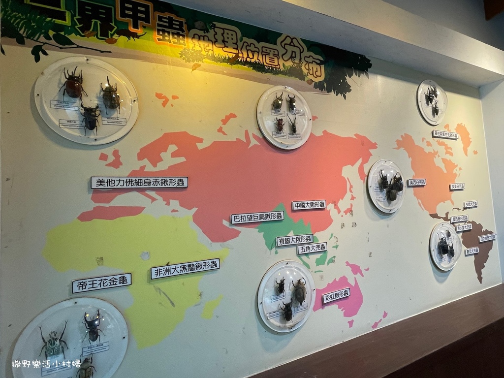 除了台灣本土的鍬形蟲,另一側牆面也展示了世界各地分布的甲蟲,真是收穫滿滿