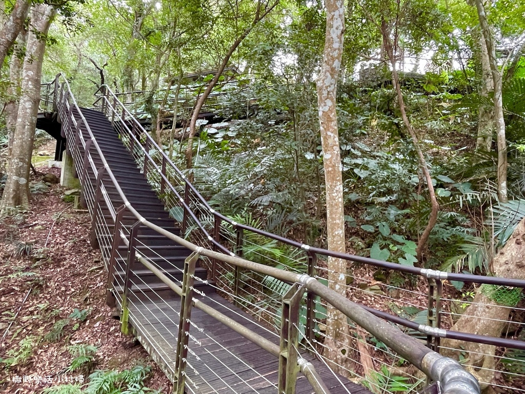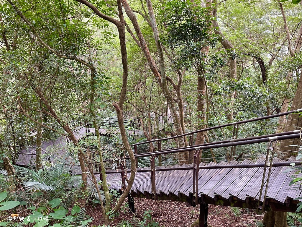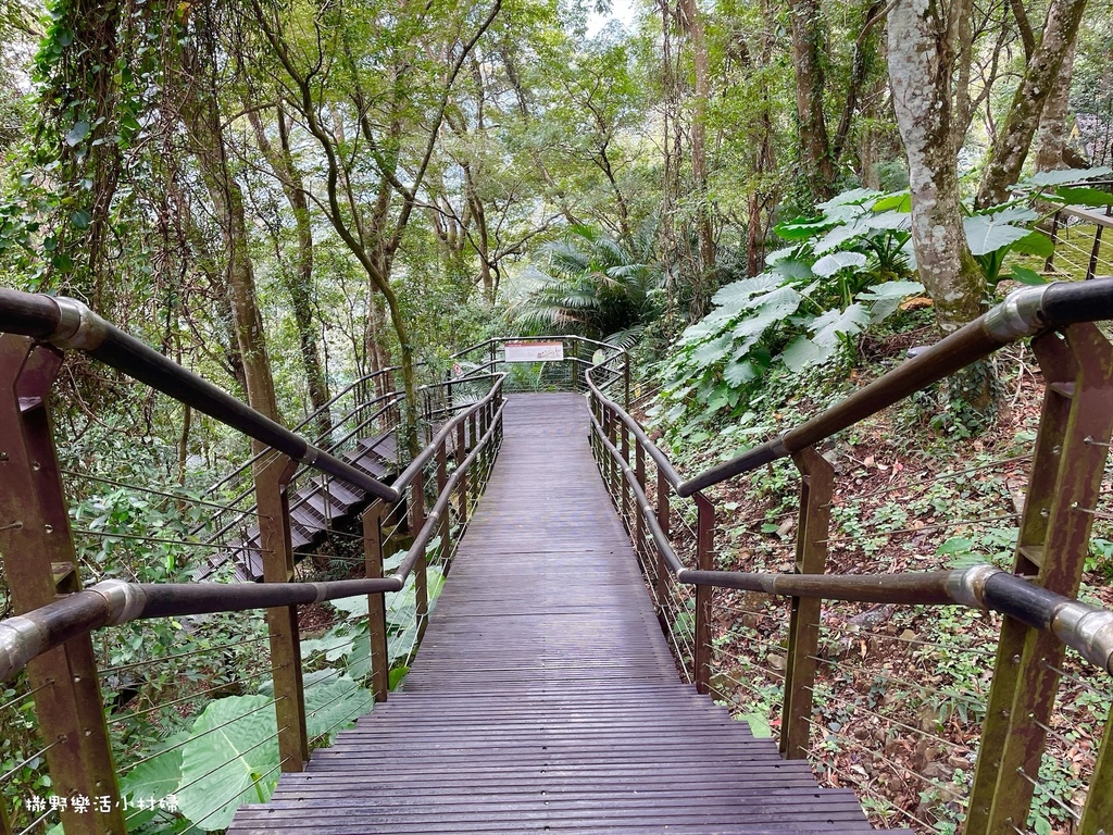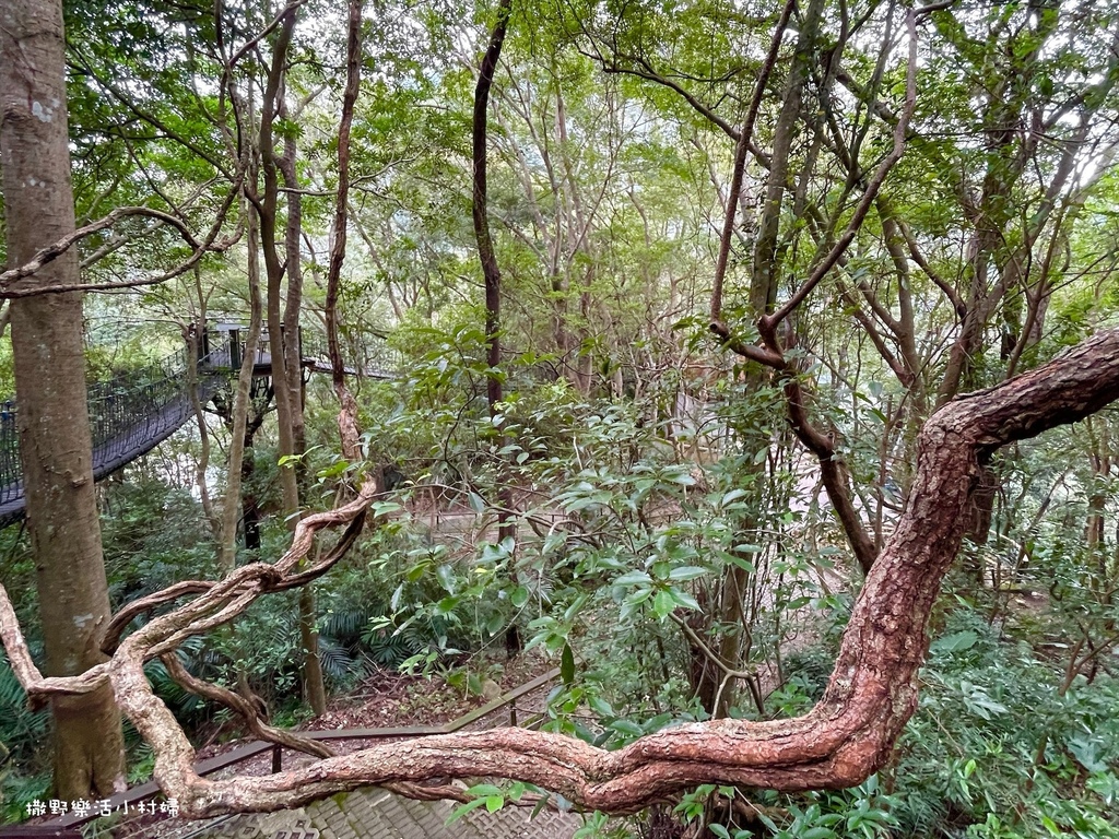逛完了昆蟲館接著會走木棧道穿梭在林間,這一小段落差會稍微大一點,不過距離並不會太長,用輕鬆的腳步和心情漫步其中,欣賞多樣的樹林和蕨類植物,儘管解放身心好好享受大自然的沐浴