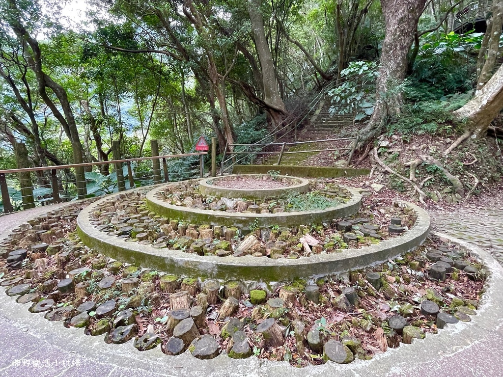 抵達闊葉林館外,首先會看見一處同心圓的年輪階梯,觀察樹木的橫切面可以算一算樹木的年齡喔
