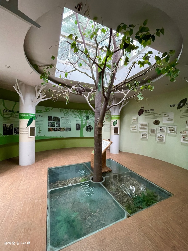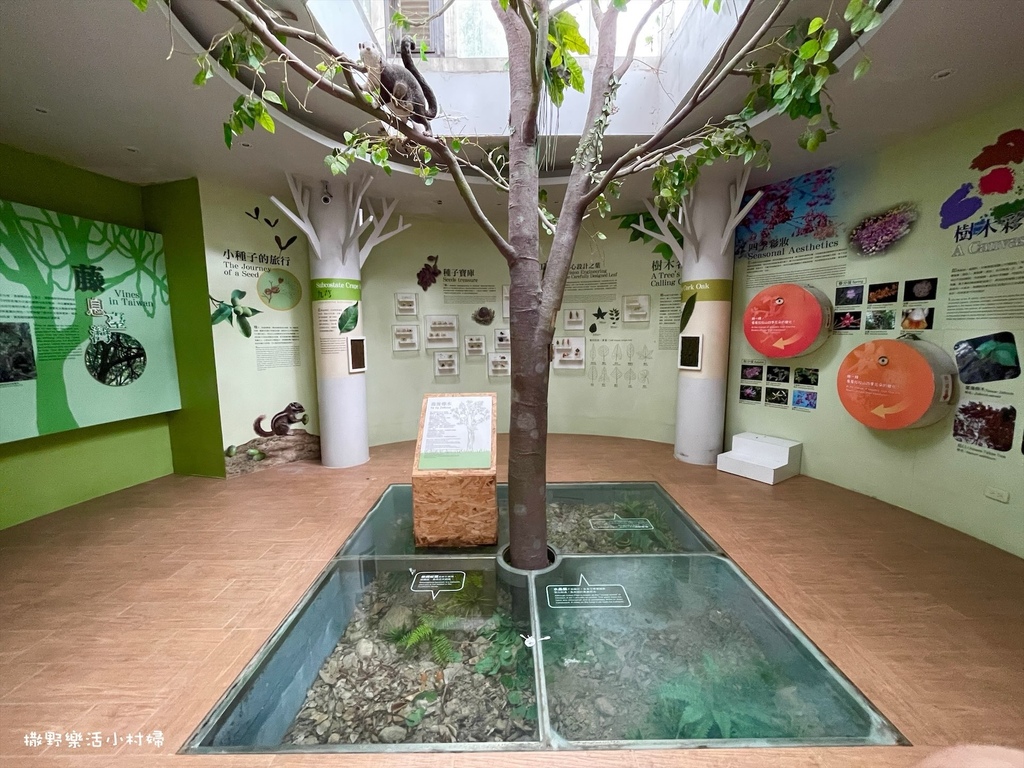 闊葉林館運用樹木、仿真模型的動植物來展現巴陵古道的生態,也有豐富的文字與圖片說明,讓遊客能夠身歷其境的感受