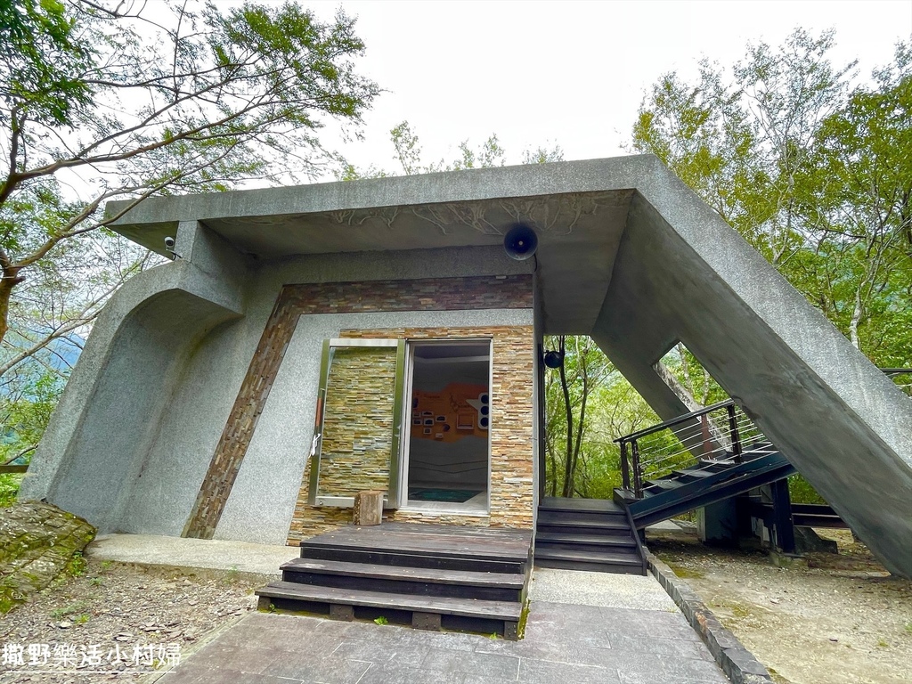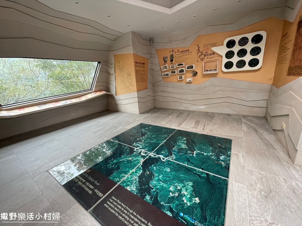 好不容易來到步道最尾端的地質館啦,我覺得它的建築外觀很特殊也很有設計感,是仿地層岩石的來展現其意象