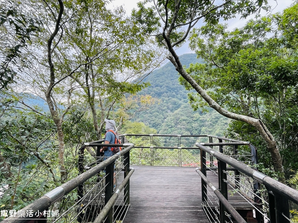參觀完四個館後再步行一小段至終點,會有一個小小的景觀平台,可以俯瞰山谷風光,視野遼闊風景絕佳,北橫著名的巴陵大橋與巴陵吊橋就橫跨著大漢溪,此刻駐足於此微風輕拂,自在漫遊於林間之後眼前一片豁然開朗,令人心曠神怡
