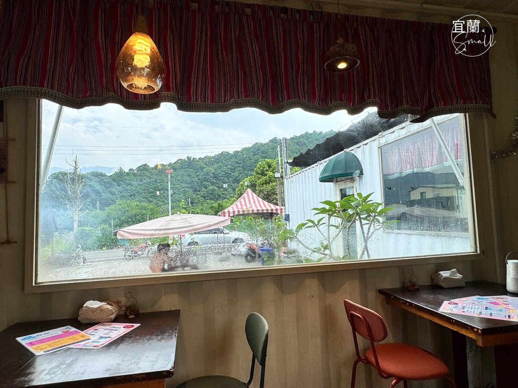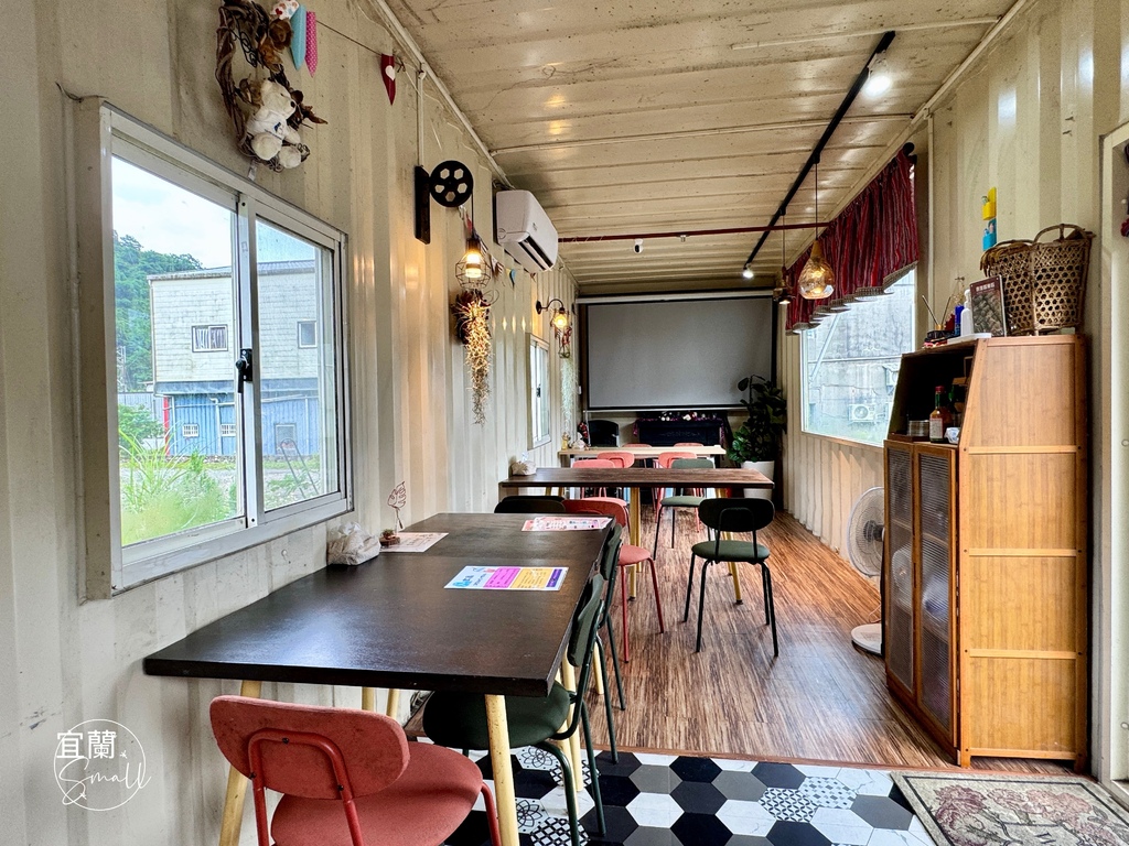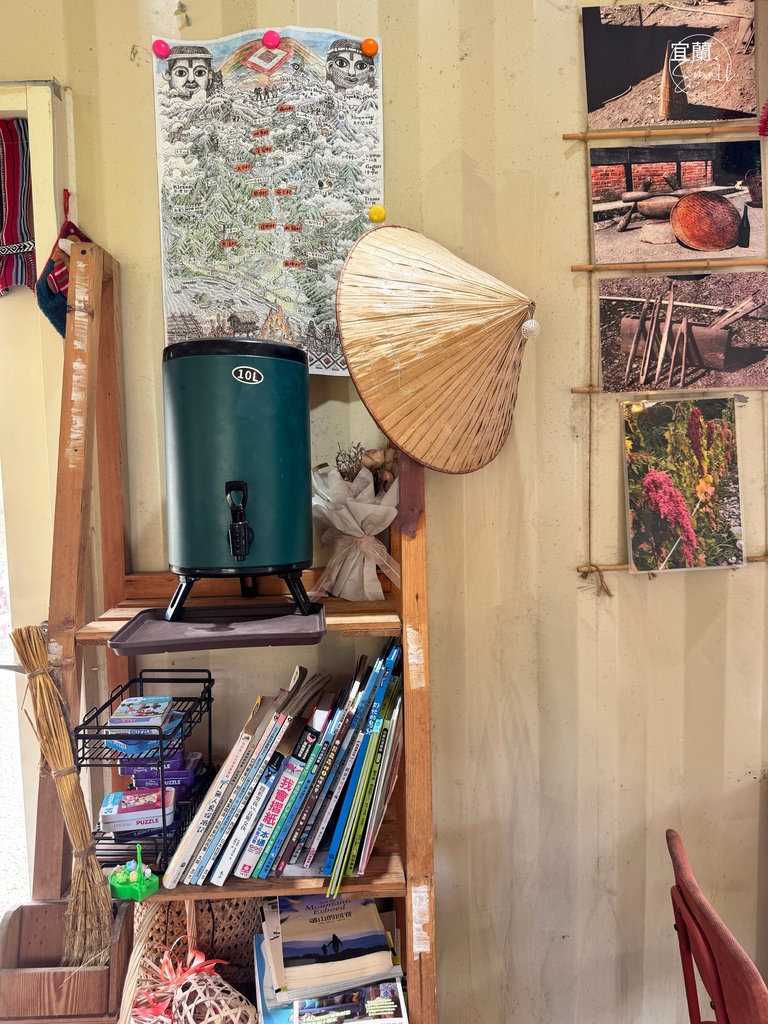L 型的貨櫃屋正面是用餐區域,另一側則是廚房料理區,室內座位並沒有很多,陳設簡單小巧溫馨,有一些原住民的手工藝品布置