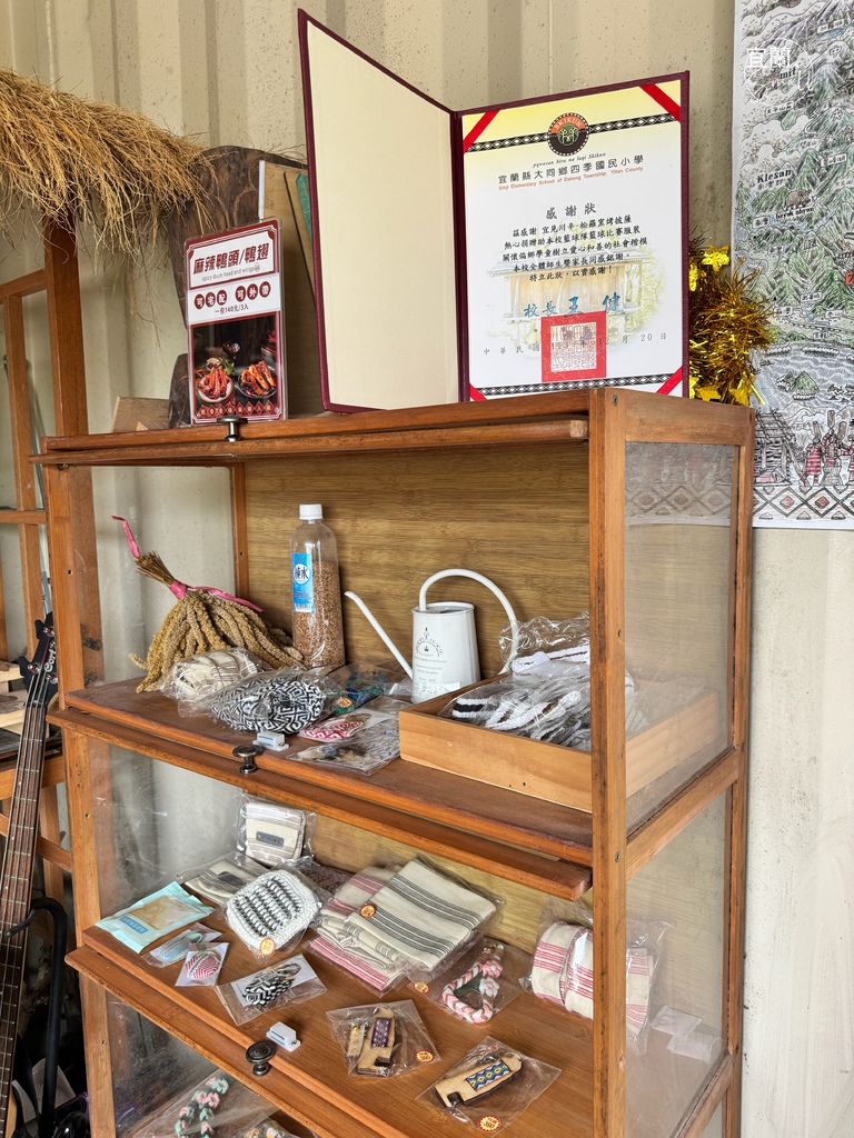 室內的角落層架販售一些部落村民的手工藝品,還有可愛療癒的多肉植物,牆上也有部落文化的照片