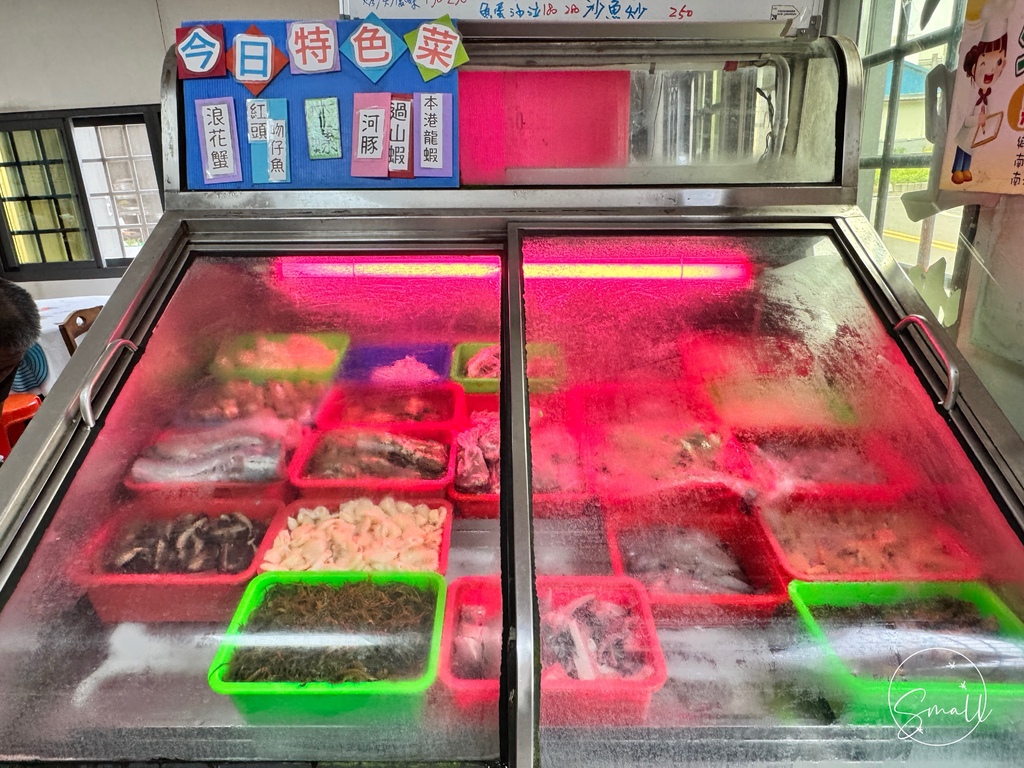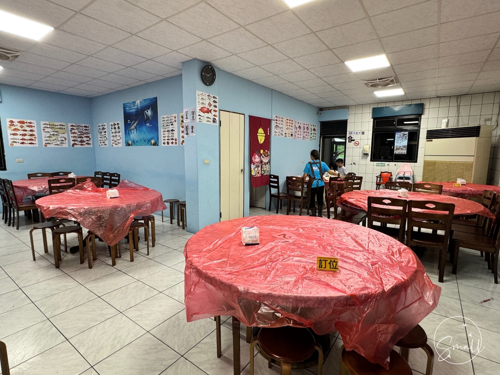 鄉味津海鮮室內用餐環境比較普通,多以大圓桌為主,當天天氣很熱還好冷氣算強,我們中午十二點多抵達時是客滿狀態,許多客人正大啖美食,看樣子需要等候一陣子,當下我們決定先到漁港散步撿拾漂流木,再過來用餐 (空景是下午兩點左右大家都吃飽離開才拍到的) 真的是人氣滿滿
