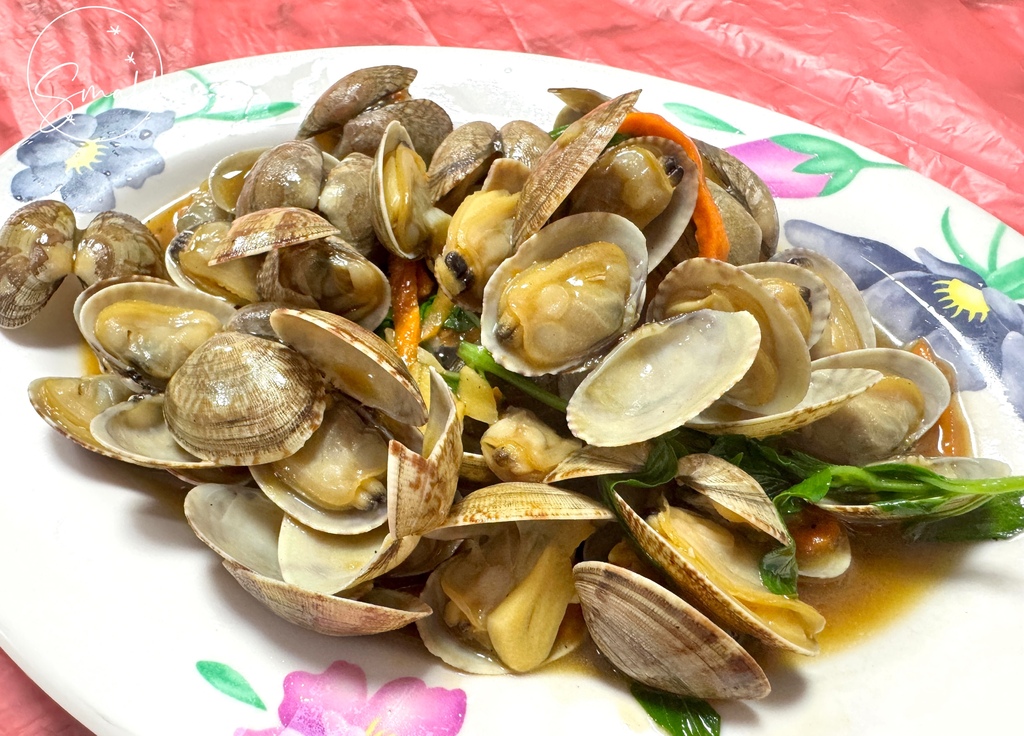 海鮮餐廳最常點的海瓜子先來一份,我們只有三人所以都選小盤的,這樣份量剛剛好,新鮮度可以,蒜頭與九層塔爆香味道十足,超級下飯的一道,鹹度很夠一定要配白飯