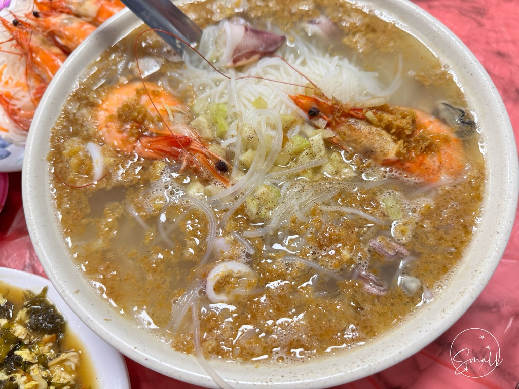 喜愛小卷米粉湯的我們忍不住在大熱天點來嘗鮮,喝得滿身汗也甘願,哈哈,這一鍋配料好多,除了小卷還有蚵仔、蝦子,米粉滑順可口,湯頭的部分我覺得稍嫌不足,說不上什麼感覺,應該是吃過其他家印象中還有更優的